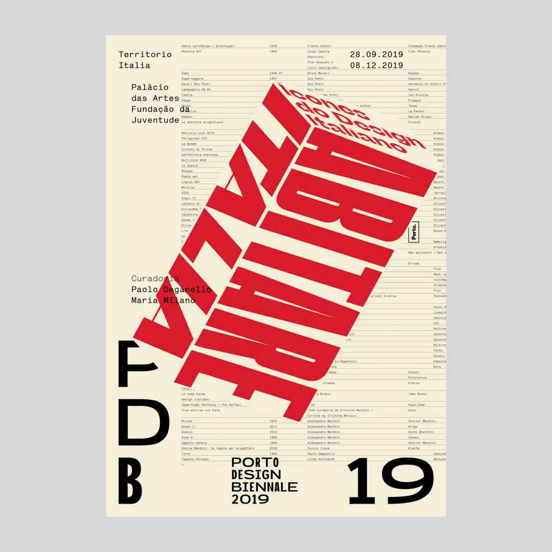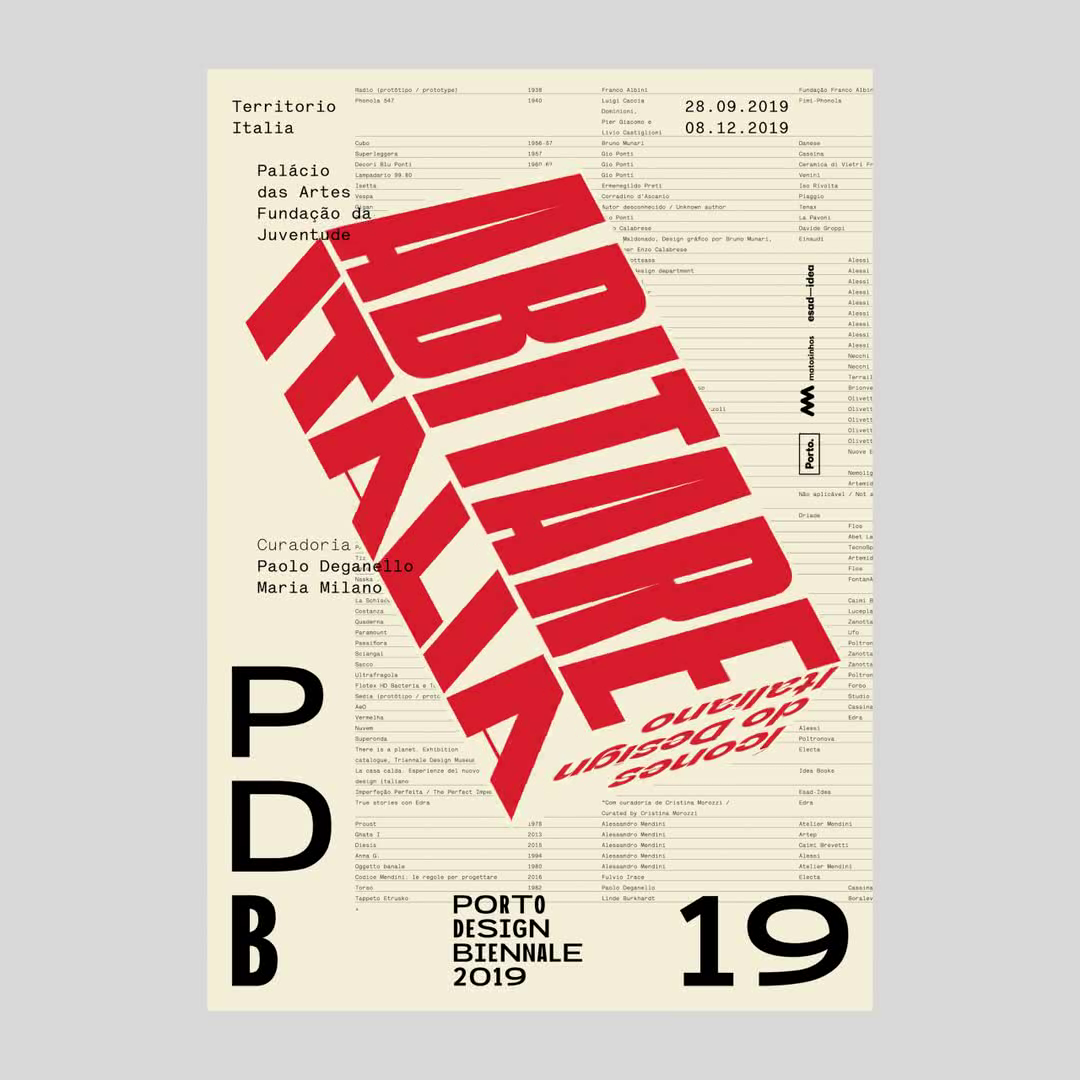 A execução do cartaz partia de algumas premissas base, como a obrigatoriedade da presença da marca Porto Design Biennale, assim como a sua designação e o ano da edição. Partindo destes pressupostos, a base inspiracional centrou-se numa série de posters desenvolvidos por algumas das referências no design italiano nas décadas de 70 e 80, todos eles com um elemento tipográfico ou não, de forma predominante. A base gráfica do cartaz tem por base a lista de objetos presentes na exposição. A tipografia Lettera, utilizada para o desenho do cartaz, é uma reinterpretação digital da typewriter utilizada na máquina de escrever Lettera de Olivetti, também ela presente na exposição.