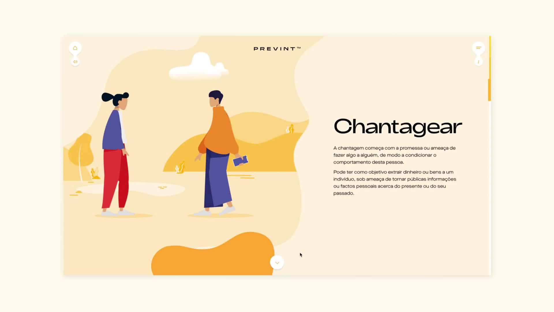 PREVINT™ — Programa de Prevenção da Violência Interpessoal pretende sensibilizar adolescentes e adultos para contextos de violência nas relações interpessoais. Recorre a um mediador visual dividido em três espectros, com 10 níveis em cada, intitulado “Violentómetro” e tem como objetivo sensibilizar e alertar a comunidade para que pedir ajuda seja sempre o primeiro passo. Pretende-se ilustrar e animar 30 comportamentos violentos, em ordem crescente de gravidade, de forma imersiva e impactante e, por outro lado, desenvolver a ferramenta online para as escolas nacionais monitorizarem a intervenção do programa que vai aplicado ao longo de 2020/2021.